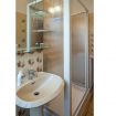 Il bagno ha una doccia con box doccia, WC, bidet e lavello;