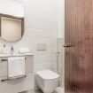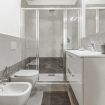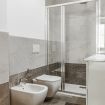 A completamento della zona giorno c’è un bagno per gli ospiti con WC, lavabo e doccia con box doccia.