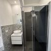 Il bagno è ampio ed ha una doccia con box in vetro, lavabo, wc e bidet.