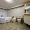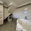 Il secondo bagno, al piano interrato, ha una grande vasca da bagno con idromassaggio, WC, bidet, lavabo e lavatrice.